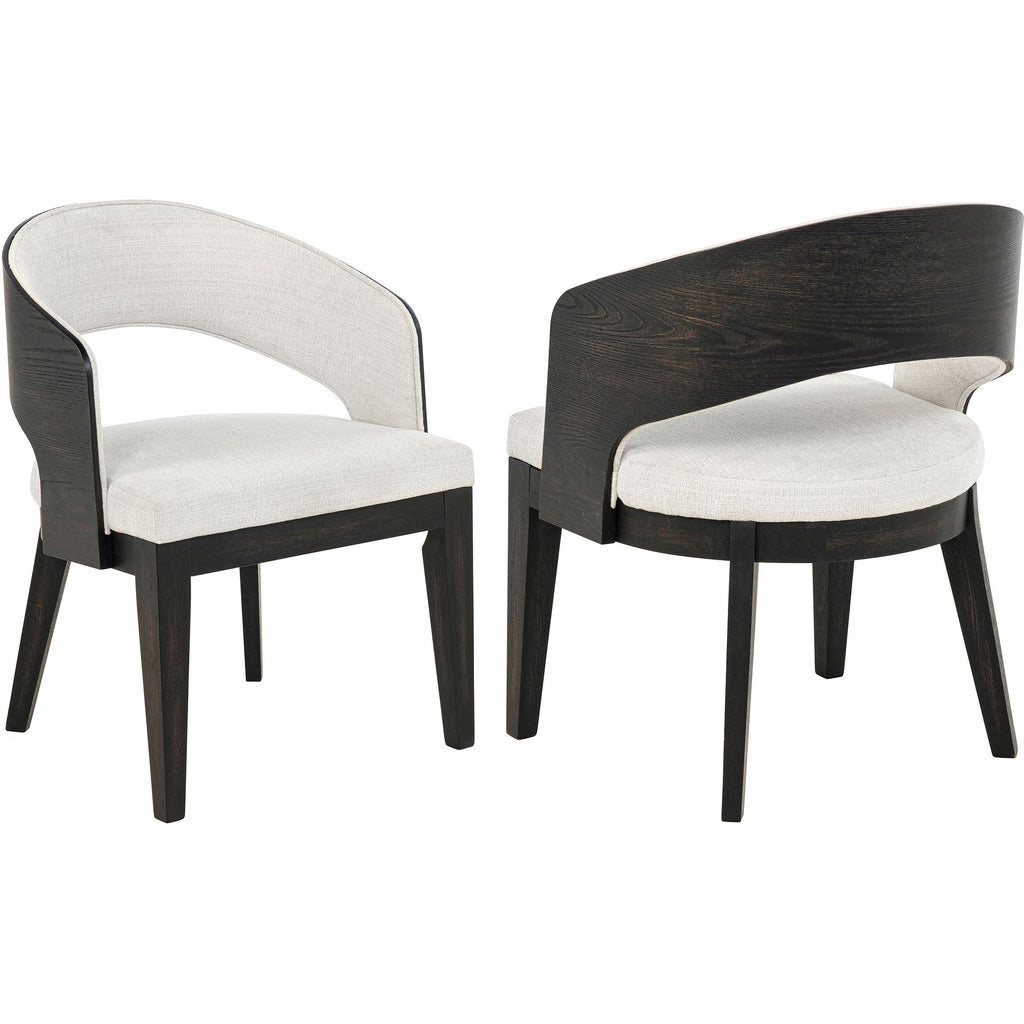 • Curved backrest hugs the form while creating a light, open-arm profile