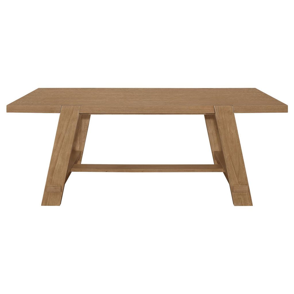 • The open, airy U-shaped legs and wide trestle base infuse a distinct modern touch to the classic farmhouse look