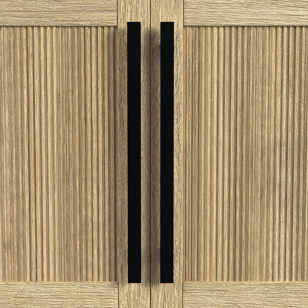 • Spacious Cabinet With Black Bar Pulls For Contrast