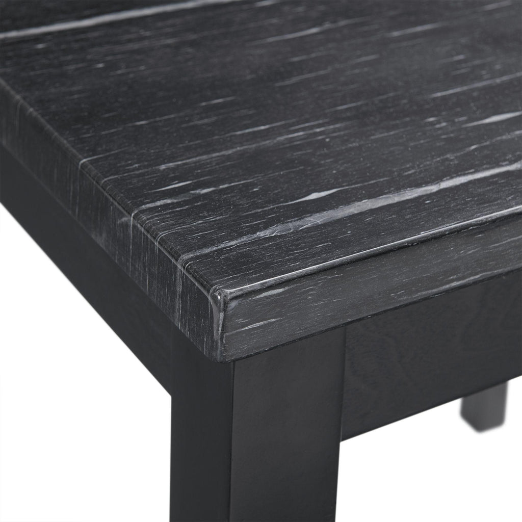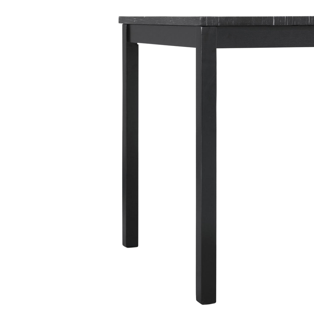• Materials: Faux marble paper veneer in dark ; MDF top; Rubber solid wood legs; Birch veneer on apron