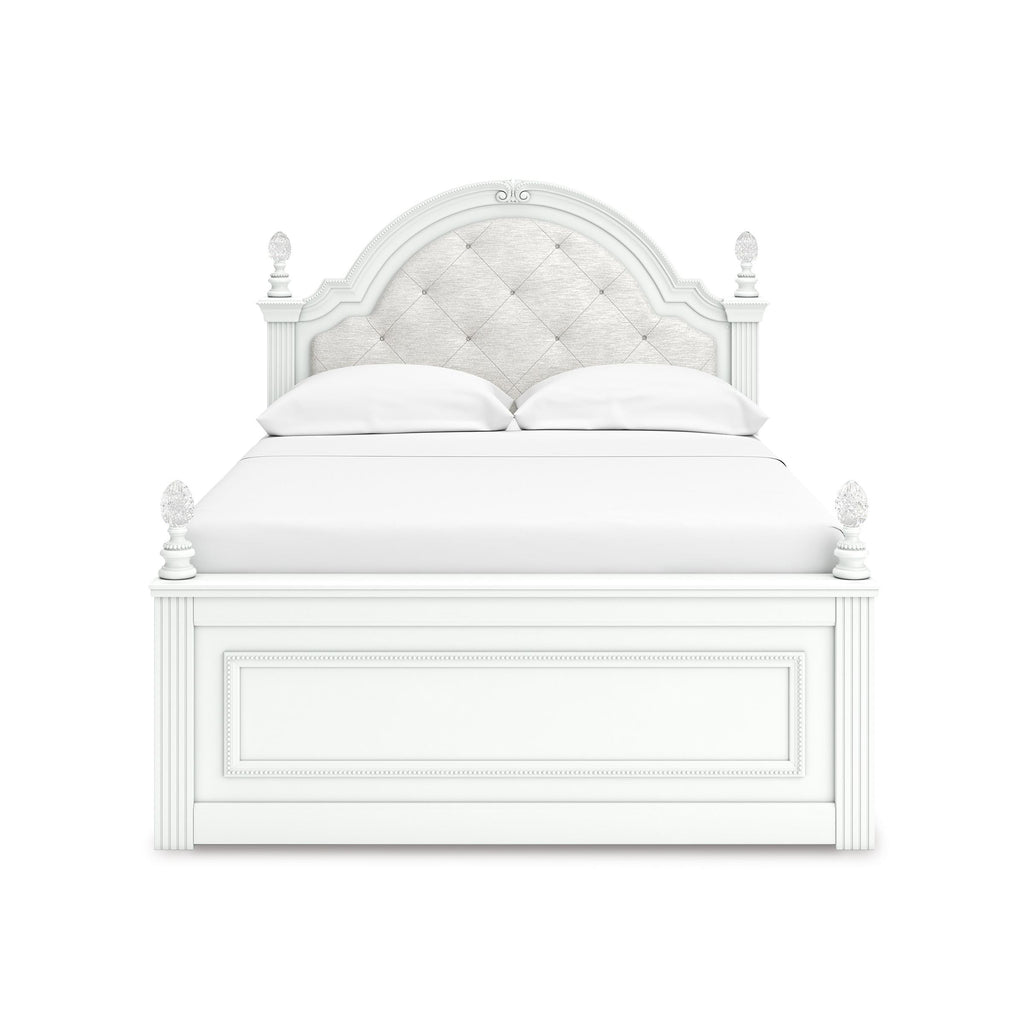 • Includes upholstered panel headboard, panel footboard, roll slats and side storage with rails