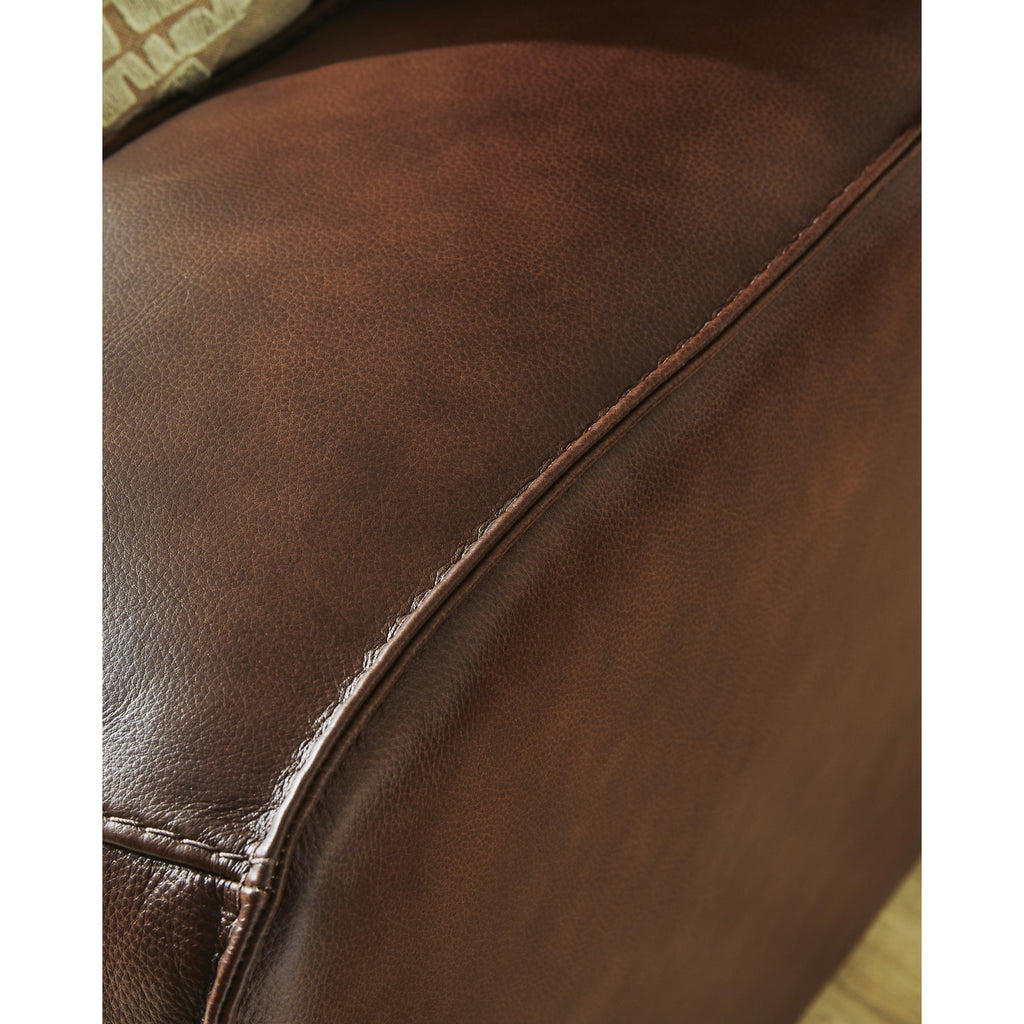 • Genuine leather covers inside areas such as the back, seat and arm cushions; skillfully matched faux leather covers the remaining areas