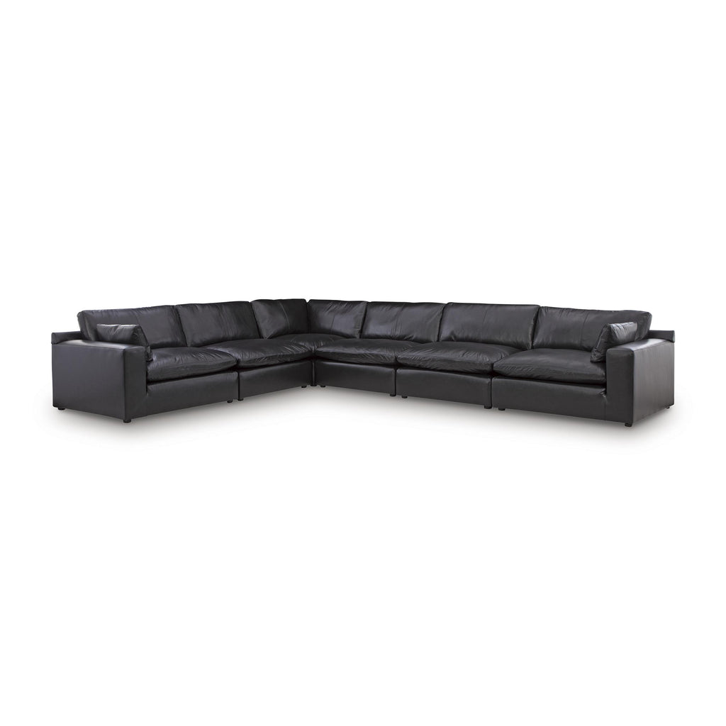• Includes 6 modular pieces: left-arm facing corner chair, 3 armless chairs, wedge and right-arm facing corner chair
