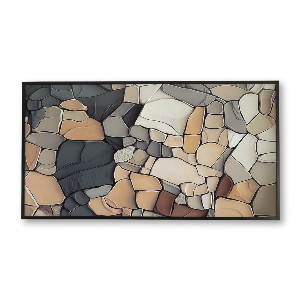 This wall art adds a touch of modern artistry wherever you place it. A unique mosaic design of stacked stones... This wall art adds a touch of modern artistry wherever you place it. A unique mosaic design of stacked stones creates a nicely neutral color palette, allowing it to seamlessly blend with various decors. Plus it can hang four ways, so you can easily switch up how it’s displayed if you rearrange your space. View more